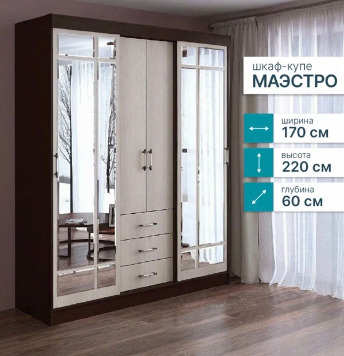 »! 🌟 Многочисленные полки, два платяных отделения и комод для удобного хранения одежды. 🌟 Раздвижной механизм премиум-класса — современное решение для вашего интерьера. 🌟 Прочные материалы обеспечивают долговечность и надежность. Габариты: 1700 x 2200 x 600 мм 💰 Цена: 25 520 руб. (Скидка: 23 500 руб.) Стоимость актуальна на момент публикации. 📞 Заказ и консультации: +7(949)717-53-26 🌐 Сайт: mebelplusmariupol.ru Создайте стильное и удобное пространство с «Маэстро»!