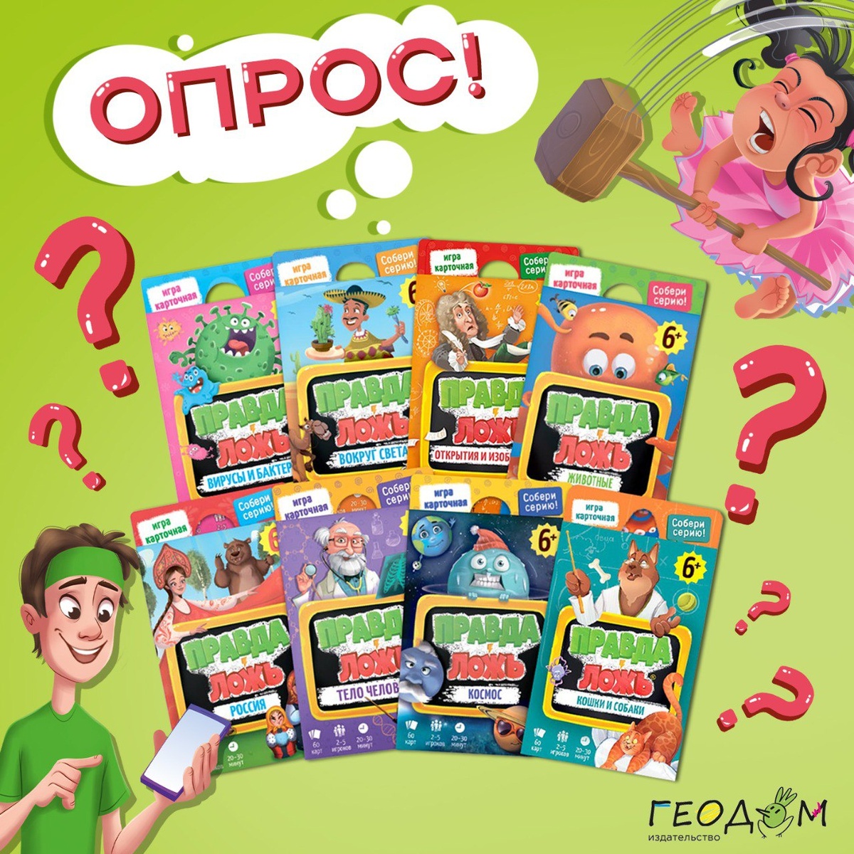 ! 👀✨ Мы обновляем легендарную серию игр «Правда или Ложь», которую рекомендует сама Валентина Паевская 🧠, и нам очень важен ваш совет! Помогите выбрать, во что будут играть дети! 🤝 В коротком опросе (всего 7 вопросов!) вы: 1️⃣ Выберете самый привлекательный дизайн коробки. 2️⃣ Подскажете, какие темы интересны вашим детям. 3️⃣ Сможете предложить свою крутую идею. 💡 ⬇️ Пройти опрос ⬇️ https://tpv.sr/uhM5aE/ Спасибо, что помогаете нам создавать лучшее! 💙