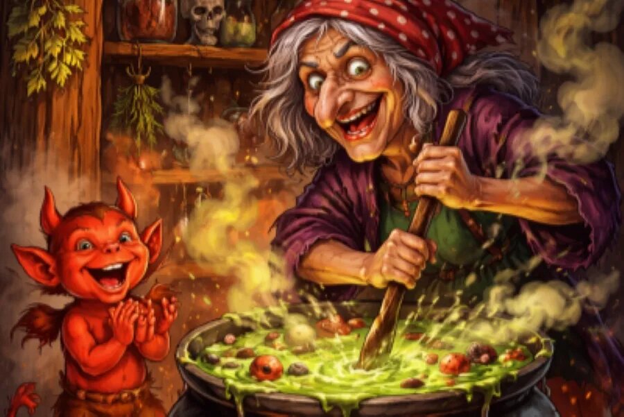 Но тут, откуда ни возьмись, в избушку влетел маленький, юркий чертенок по имени Кузя. Кузя был озорником и проказником, и очень любил подшучивать над Бабой-Ягой. Он давно мечтал попробовать ее знаменитый компот, но Яга всегда строго следила, чтобы никто не прикасался к нему до полного приготовления.