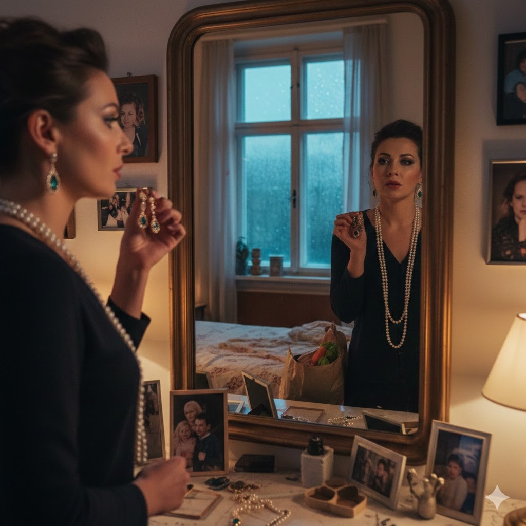 Но точка невозврата была пройдена в тот день, когда Марина, вернувшись раньше с работы из-за отмененной встречи, застала Алину в своей спальне. Та не просто была там — она сидела перед туалетным столиком Марины, открыв шкатулку с украшениями, которую Марина никогда не трогала. Это были семейные реликвии: жемчужное ожерелье от бабушки и золотые сережки с изумрудами — подарок покойного отца на свадьбу.