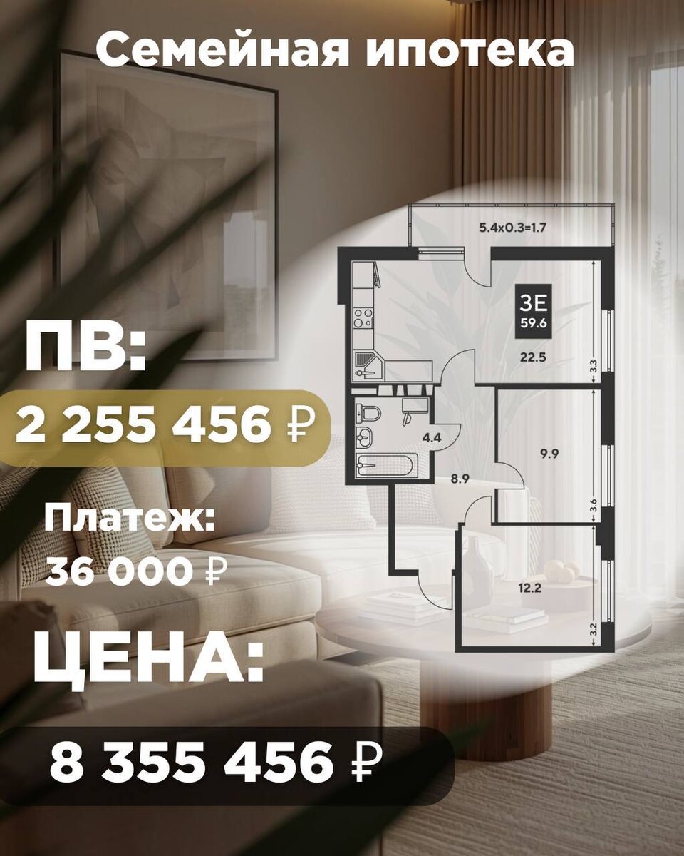! 59,6 м² продуманной планировки в Краснодаре! ✔️ Большая кухня-гостиная 22,5 м² — центр вашей жизни ✔️ Две изолированные спальни — отдельное личное пространство для каждого ✔️ Просторная прихожая 8,9 м² ✔️ Санузел 4,4 м² 🤫Это не просто квартира. Это — сценарий вашей счастливой жизни. За лучшими планировками вы знаете к кому обращаться!