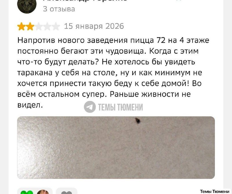 Тюменец прислал видео, на котором насекомое бежит к ресторану быстрого питания. Посетители также жалуются на вредителей в отзывах на 2GIS.