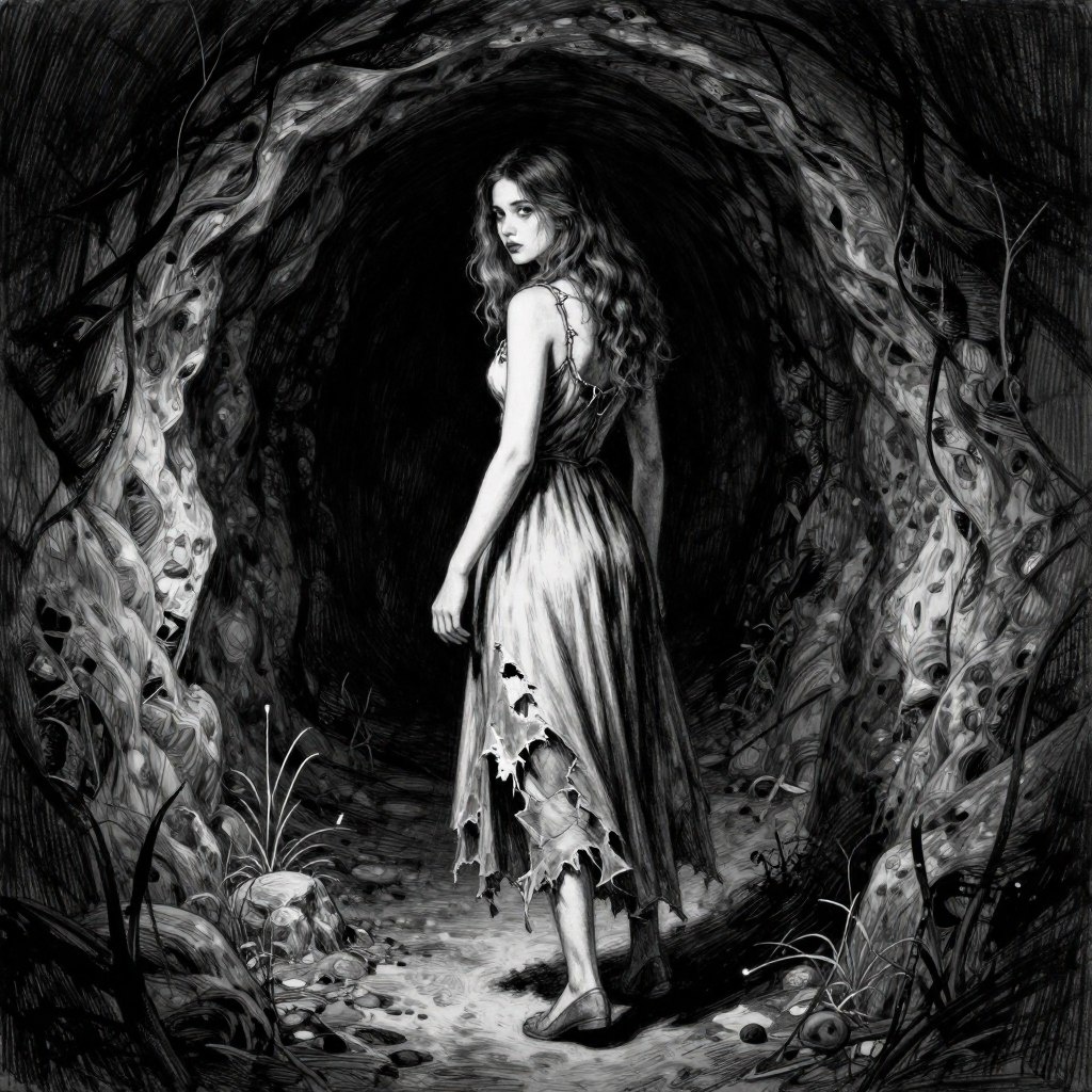 Обретают вход в нору глубокую. В ту нору бы не ходить, но чует девица,