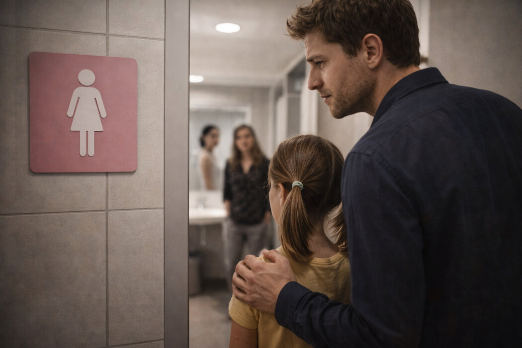 Есть конкретная ситуация, с которой сталкиваются отцы маленьких девочек. Вы с дочкой в торговом центре, в дороге, на секции, в кафе. Ребёнку нужно в туалет или в раздевалку. И в этот момент выясняется, что общественное пространство к этому не готово. Мужской туалет для девочки часто небезопасен и просто не подходит. Женский формально предназначен не для мужчины. Универсальных туалетов нет или они заняты. Семейные комнаты редкость. В итоге отец оказывается в ловушке, где любой вариант выглядит неправильным. Не потому что он делает что-то плохое, а потому что система не предполагает его присутствие рядом с дочкой. Общество до сих пор живёт в логике, что с маленьким ребёнком по умолчанию должна быть мать. Если рядом отец, он воспринимается как исключение. Это выражается не правилами, а взглядами, паузами, комментариями, напряжением в воздухе. И это давление мужчина чувствует мгновенно. В результате обычная бытовая ситуация превращается в стресс. Отец начинает торопиться, суетиться, раздра