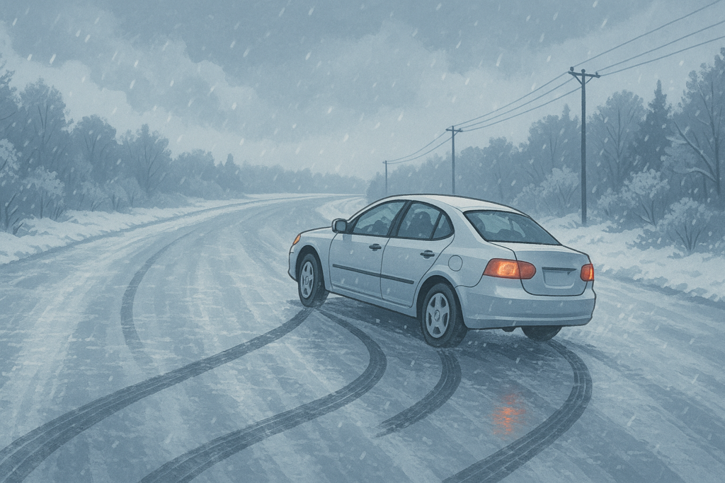 Машину губернатора Курской области занесло на трассе из-за непогоды