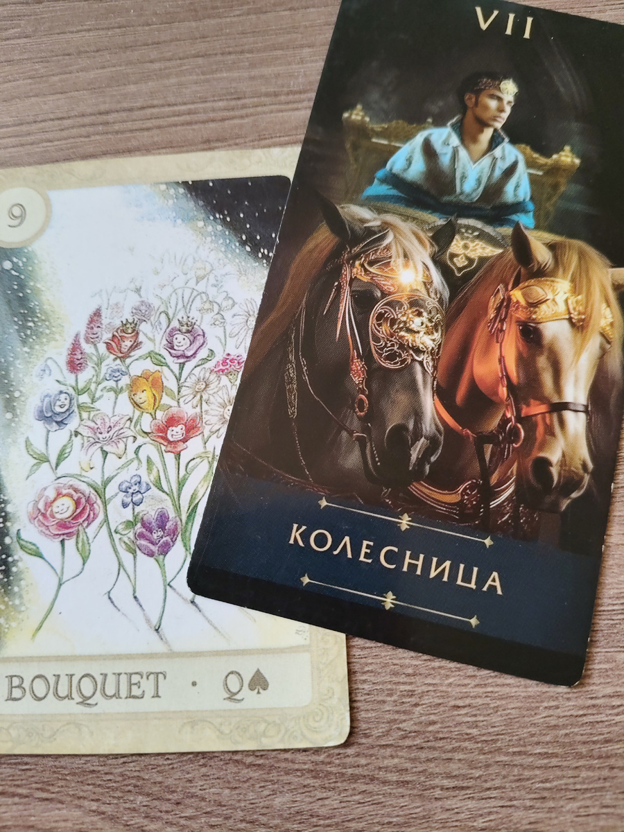 Наступающая неделя окутана ароматом неожиданных подарков судьбы и энергией уверенного движения вперед. Сочетание карт Букет из Ленорман и Колесницы из Таро предвещает период, когда радость обретения встречается с решимостью достижения, создавая мощный импульс для реализации поставленных задач.