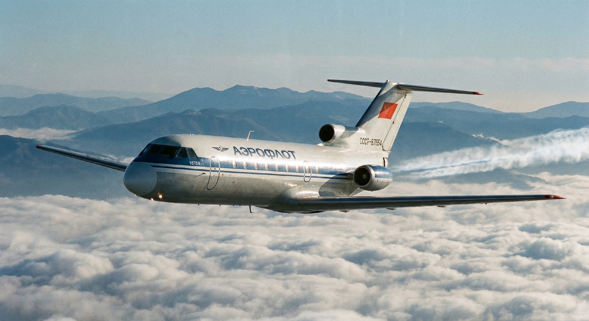 Первый полёт прототипа состоялся 21 марта 1963 года на ЛИИ в Жуковском. Пилот Пётр Богданов вспоминал: "Это был истребитель в пассажирском фюзеляже — лёгкий, резвый, с тремя движками, как у МиГа". Самолёт построили на базе опыта Як-28, сохранив реактивную схему вместо турбовинтовых конкурентов вроде Ан-24. Почему керосин? Турбореактивные двигатели ТРД-8 (позже ВЗЭ-8) проще в производстве и дешевле турбовинтовых, а СССР имел избыток керосина от нефтедобычи.