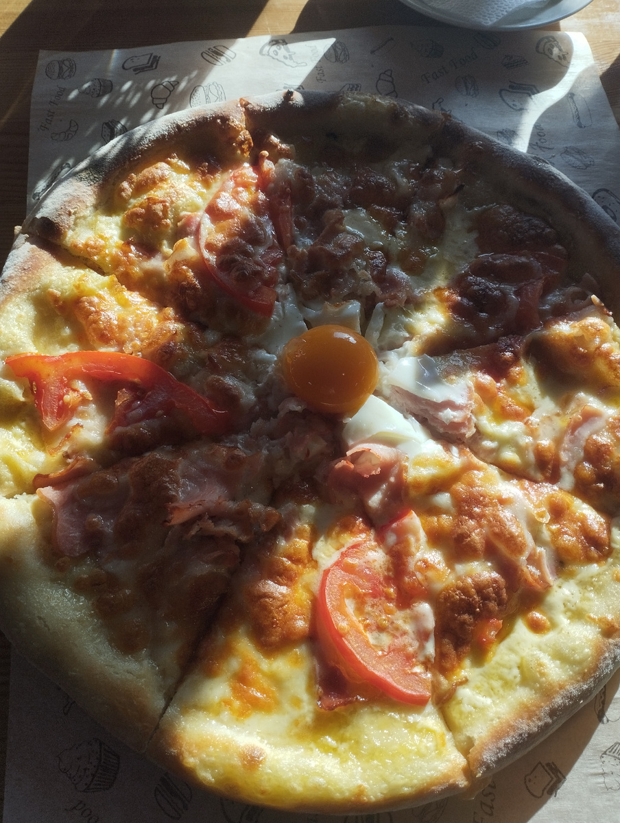 Но вот такой денёк выдался необычный и захотелось мне зайти в Пиноккио. А там в меню пицца Карбонара. Нужно попробовать.