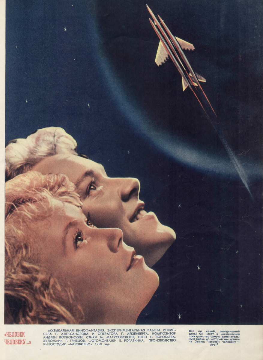 Фестиваль закончился, и мы отправились в путешествие по стране, чтобы снять места действия для нашего будущего фильма. В сибирской экспедиции сама жизнь ворвалась в фильм, и он перестал быть только концертом — он стал киноповествованием о нашей социалистической действительности, о достижениях науки, техники, искусства. Братск, Ангарск, Иркутская ГЭС, синхрофазотрон, электронный кран, ракетопускатель — все это настоящее, существующее, и в то же время это фантастика наших будней. Если бы всю эту документальную феерию пришлось снимать обычным методом, потребовались бы десятки миллионов рублей и очень длительное время.