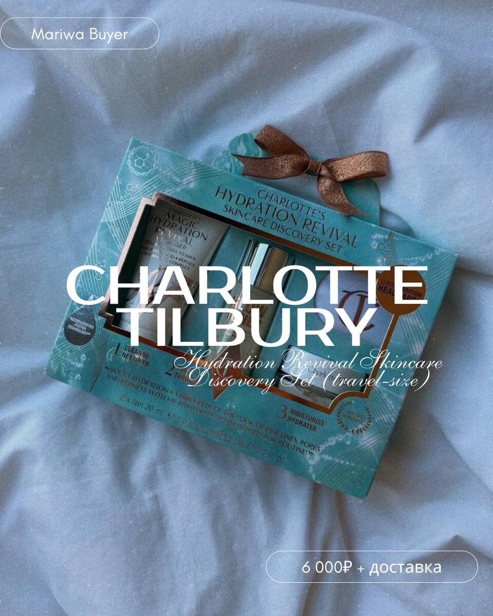 🤎 Если ваша кожа обезвожена, тускла, уставшая и просит только одного - здорового сияния - то этот набор прямое попадание в цель. 🧴 Hydration Revival Skincare Discovery Set (travel-size): 🌟Очищающее средство мягко очищает, не нарушая гидробаланс. 🌟 Тонер с эффектом сияния увлажняет и выравнивает тон. 🌟 Ультралёгкий крем даёт чувство свежести и наполненности. 🤎 6 000₽ + доставка 💧 Результат: кожа становится напитанной, гладкой, пропадает стянутость, появляется «отдохнувший» вид и здоровое сияние. ✅ Идеально для: нормальной, сухой и обезвоженной кожи. 💬 Больше продуктов Charlotte Tilbury со скидками до ➖2️⃣🔤🔤 смотрите в каталоге в комментариях. ⬇️ Заказать • Условия • Каталоги • Витрина 🔎Поиск по категориям | по брендам