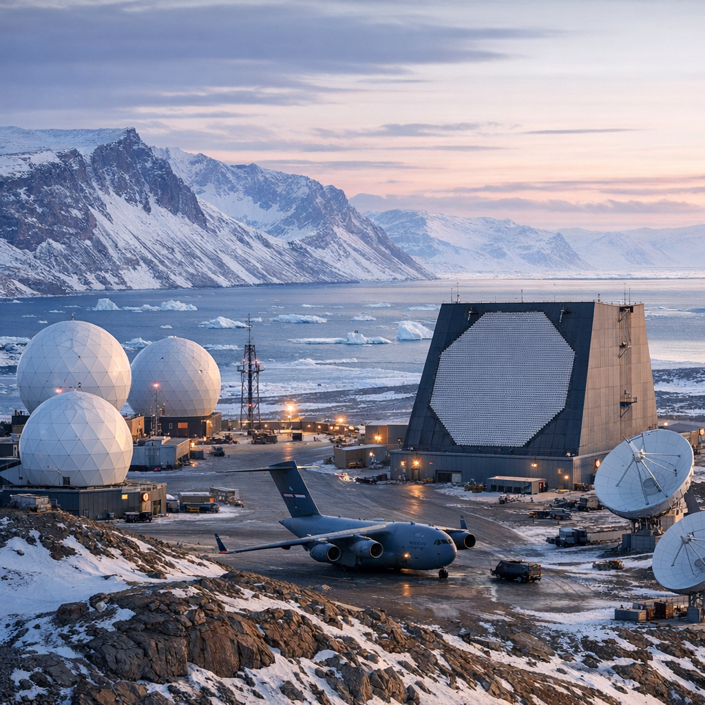 Если смотреть на карту, Гренландия выглядит как скучный кусок льда между Америкой и Европой. Но для военных стратегов это идеальная «полка» посреди планеты: оттуда видно ракеты, спутники и новые арктические пути. В северо‑западной части острова стоит база Pituffik (бывшая Thule) — это не просто аэродром, а глаза и уши США в Арктике: радары раннего предупреждения о ракетных пусках и элемент системы космического наблюдения. Как если бы ты поставил камеру видеонаблюдения прямо над входом соперника. Под ледяным панцирем Гренландии обнаружили целую «сантехнику» из подлёдных озёр и каналов — учёные нашли как минимум два крупных субгляциальных озера на глубине порядка 800 метров. Это как если бы под твоим двором внезапно нашли два подпольных бассейна, о существовании которых никто не подозревал. Такие озёра и каналы — часть скрытой системы, по которой вода смазывает и двигает ледяной щит. От того, как он течёт, зависит, насколько быстро Гренландия будет терять лёд и сколько воды окажется в