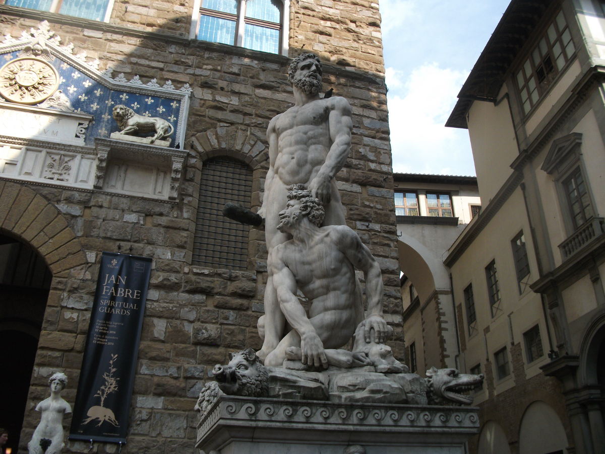 Во Флоренции, на площади Синьории, в тени Палаццо Веккьо, рядом с копией "Давида" Микеланджело стоит мраморный гигант, что стал мишенью для ярости и насмешек. Его презирали так искренне и поэтично, что неделями к его подножию летели стихи, полные сатиры и ненависти. Это скульптура "Геркулес и Какус" работы Бандинелли, представленная в 1534 году и высотой 5 метров. Ее задумывали как гимн Медичи, но она превратилась в объект одной из самых беспощадных публичных порок эпохи Возрождения. Более сотни сатирических сонетов были пришпилены к ее основанию, а художник, сгорая от стыда, бежал из города. Высеченный из белого каррарского мрамора, этот колосс запечатлел миг победы: могучий Геркулес побеждает огнедышащего похитителя скота Какуса. Заказ, рожденный в период реставрации власти Медичи – волей папы Климента VII и герцога Алессандро Медичи, – виделся им противопоставлением оригинальному "Давиду" Микеланджело, стоявшему тогда на площади. Сам мраморный блок изначально предназначался для с
