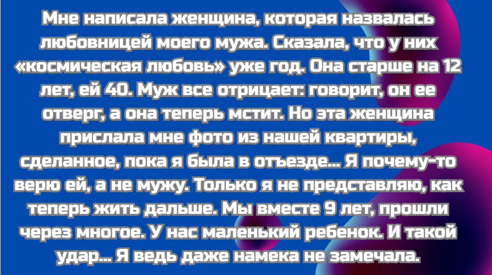 Короче, виноватым остался я. © kLop.p - Наш брак с мужем был, мягко говоря, непростым: мы часто ругались. Но три года назад муж будто стал другим человеком — и именно тогда все резко поменялось. Он превратился почти в мужчину мечты. Мне казалось, что он наконец увидел во мне личность. Он начал помогать по дому, приносить цветы, звать на свидания, делать очень продуманные подарки. После ссор он на следующий день мог подойти и признать свои ошибки (если был не прав), хотя раньше это было невозможно. Он научился извиняться, хотя прежде считал это унижением. Даже говорил, что всегда был счастлив со мной. А пять дней назад я случайно наткнулась на его переписку с другой женщиной. Они общаются уже три года. Он жаловался ей, советовался с ней про подарки, поездки и про все те «прекрасные» вещи, которые делал для нашей семьи. И именно она направляла его и подсказывала, как «исправиться». Он благодарит ее за то, что она помогла сделать его семейную жизнь хоть как-то терпимой. И пишет ей, что она — любовь всей его жизни. Она отвечает взаимностью. Но оба не хотят разводиться, потому что это, видите ли, «эгоистично». Какая милота. Меня тошнит. Выходит, последние три года моего счастья были просто декорацией. И да, там не только переписка: они встречаются, просто редко, потому что она из другого города. © Wide-Area-6779
