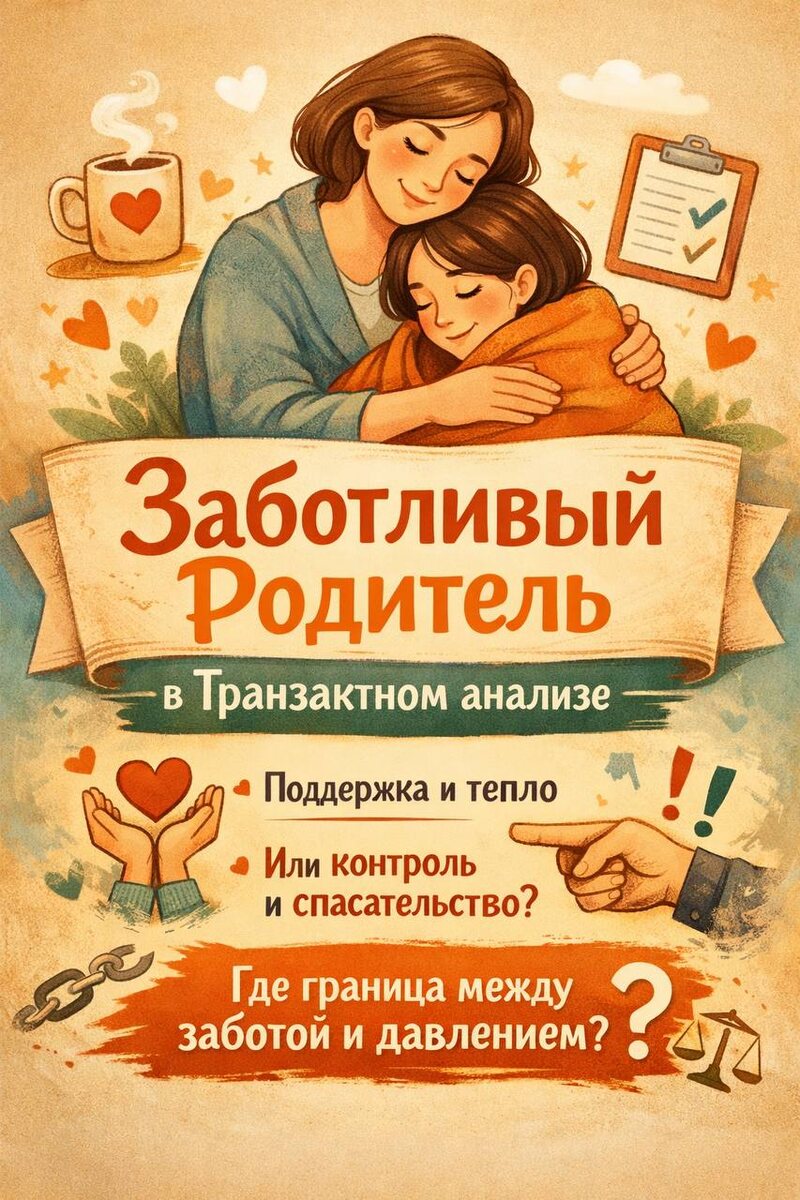 ! 🧠 Внутреннее,Эго-состояние Заботливого Родителя в Транзактном анализе Или та часть нас, которая хочет накрыть пледом, накормить, поддержать и сказать: «Я рядом» 💛 А иногда — «Я лучше знаю, как тебе надо». Заботливый Родитель — это внутренний голос защиты, поддержки и опоры. Он может быть как источником тепла, так и скрытого давления. 🌱 Откуда он берётся? Из детства. Мы перенимаем стиль заботы значимых взрослых. Например: — мама, которая утешала и верила → формирует тёплого и поддерживающего Родителя — взрослые, которые всё решали за ребёнка → формируют контролирующую «заботу» ✨ Как он помогает? (положительные примеры) 💬 Вы поддерживаете подругу перед собеседованием: «Ты справишься, ты уже столько всего прошла» 🧑🍼 Вы говорите ребёнку: «Я рядом, если тебе страшно» — и даёте ему смелость пробовать 🛌 Вы замечаете свою усталость и позволяете себе отдых — это тоже забота о себе 🤝 Вы помогаете близкому, но только когда он просит, а не когда вы «лучше знаете» Это забота, кот