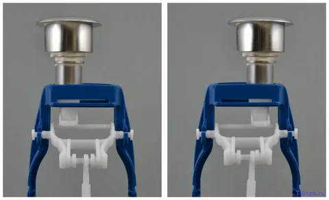 · Причина: Несовпадение механизма кнопки и штока сифона, поломка пластиковых деталей кнопки.