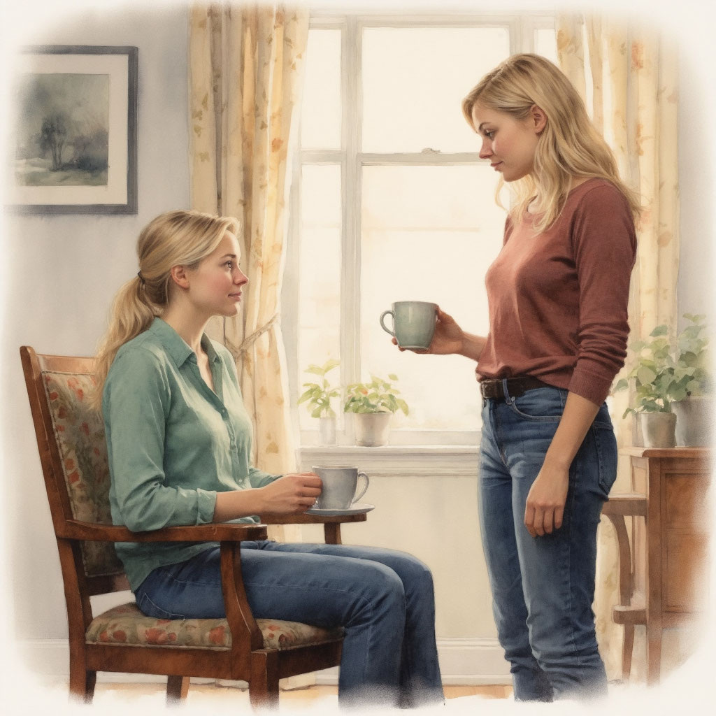 Анна замерла, держа в руках чашку с остывшим чаем. Слова ударили точно в цель — болезненно, но без всплеска эмоций. Она медленно поставила чашку на стол, стараясь не смотреть на собеседницу. Та сидела напротив, в кресле, небрежно закинув ногу на ногу, и смотрела с лёгкой, почти снисходительной улыбкой. В её взгляде читалось не просто превосходство — скорее уверенность человека, который уже мысленно распределил роли в этой сцене.