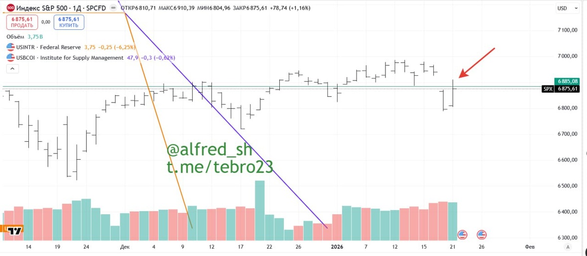 SP 500 - шорт после ложного пробоя, сценарий ранее опубликован в обзоре