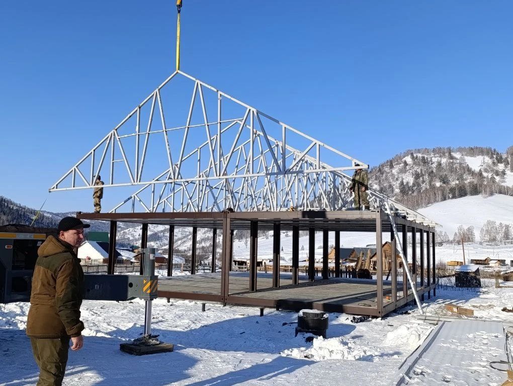 На площадке в Урлу-Аспаке идёт монтаж металлического каркаса нового модульного культурного центра