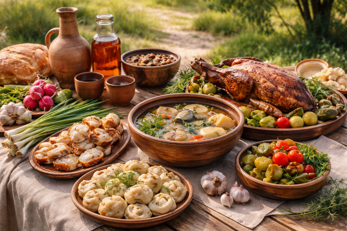 Королем стола, конечно, был кулеш. Иностранцы морщили носы, глядя на это варево, но любой военный историк вам скажет: это гениальное изобретение. Пшенная крупа, заправленная салом с луком. Если повезет — с мясом. Если нет — просто с водой. Это густая, плотная субстанция, которая падает в желудок тяжелым комом и медленно отдает энергию. Дома кулеш делали погуще, чтобы ложка стояла, в походах — пожиже, вроде супа. Европейцы, привыкшие к разделению на «первое» и «второе», просто не понимали этой универсальной солдатской каши. Для них это выглядело как корм, а для казака это была жизнь.