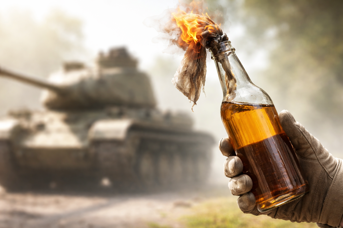 Коктейль Молотова — это оружие отчаяния. Это символ сопротивления, когда у тебя нет ничего, кроме ярости и пустой тары. Психологически это мощно — показать врагу, что даже земля под его гусеницами будет гореть. Но технически... Если мы берем современный конфликт, то да, утверждение верно: для оператора эта бутылка представляет куда большую угрозу, чем для бронированной машины. Танк уедет, отряхнется и продолжит бой. А смельчак с обгоревшими руками останется лежать в пыли.