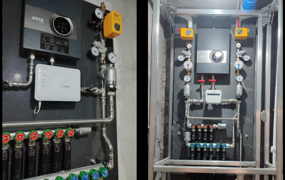 Обвязка выполнена на нержавеющих трубах и пресс-фитингах Varmega. Фитинги имеют систему контроля опрессовки. Для монтажа используется профиль V. https://clck.ru/3RMvcJ Сразу после коренных кранов как на холодной, так и на горячей воде смонтирована система защиты от протечек Neptun, состоящая из шаровых кранов и блока управления Smart Tuya, который позволяет контролировать и дистанционно управлять данной системой. https://clck.ru/3RMwNS Для снижения давления в системе холодного и горячего водоснабжения установлены мембранные редукторы давления Varmega. https://clck.ru/3RMzxy Как до редуктора, так и на самом редукторе установлены манометры, которые позволяют контролировать давление в водопроводе как до, так и после редуктора. Для очистки воды от механических загрязнений установлены промывные поворотные фильтры Varmega. https://clck.ru/3RN2wg Линия промывки фильтров в канализацию. выполнена в общей концепции узла - тоже из нержавеющей стали. В качестве резервного источника горячего водос