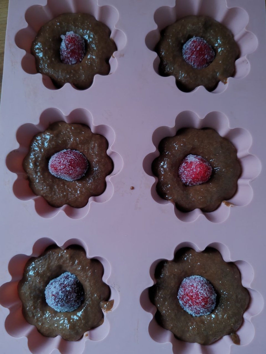 Ингредиенты: - 15 г сливочного масла 🧈 - 1 низкоуглеводный трюфель Bob 🍫 - 20 г льняной муки 🌱 - 2 яйца 🍳 - 1 чайная ложка разрыхлителя 🧂 - 1 г эритрит + сукралоза 🍭 - 4 капли стевии 🌿 - Ванилин на кончике ножа 🧇 - 6 ягод замороженной клубники среднего размера 🍓 Приготовление: 1. Порежьте трюфель и добавьте сливочное масло. Растопите в микроволновке около 1 минуты. 🔥 2. Добавьте остальные ингредиенты и тщательно перемешайте. 🧼 3. Перелейте в силиконовые формы для кексов, разделив на 6 кексов. 🍽️ 4. В центр каждого положите замороженную клубнику. 🍓 5. Готовьте в микроволновке 3 минуты при мощности 800 Вт. 📞 ▌ КБЖУ на порцию и на 1 кекс На всю порцию (6 кексов): - Калории: 483,275 ккал 🔥 - Белки: 22,485 г 💪 - Жиры: 35,065 г 🥑 - Углеводы: 11,58 г 🍇 На 1 кекс: - Калории: 80,546 ккал 🔥 - Белки: 3,748 г 💪 - Жиры: 5,844 г 🥑 - Углеводы: 1,93 г 🍇 ▌ Примерный вес порции Сумма всех ингредиентов составляет примерно 230 г. 📏 ▌ Итоговый расчет КБЖУ На всю порцию (6