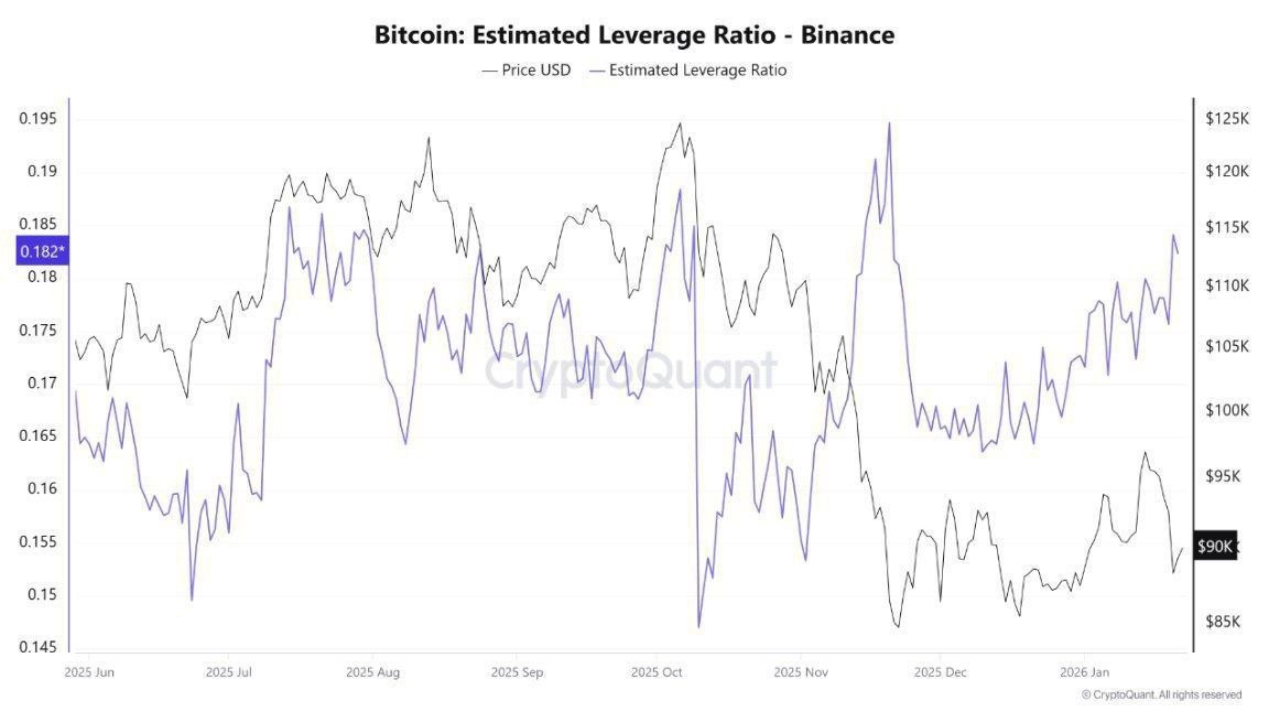 Binance's Bitcoin leverage ratio has reached its highest level since November, according to data from the exchange. This indicates a market environment more prone to liquidations during sharp price moves.