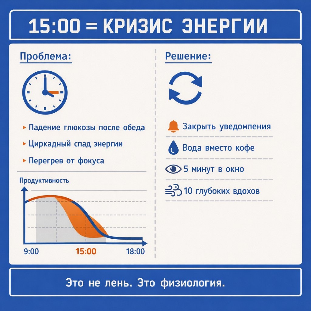 Знакомо: солнце светит, задачи ждут, а в 15:00 мозг просто ВЫКЛЮЧАЕТСЯ. Вы пялитесь в код, но он не компилируется у вас в голове.