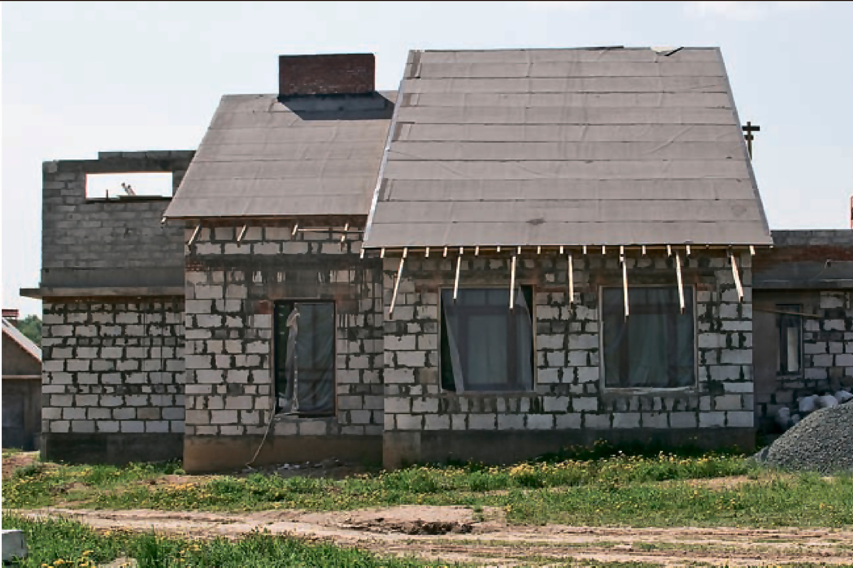 Выявились и иные просчёты — как проектные, так и строительные. Например, на уровне второго этажа в доме были предусмотрены четыре открытые террасы значительной площади, что в условиях нашего климата не просто малоприемлемо, но даже опасно. Ведь как бы вы ни гидроизолировали площадки террас, скапливающаяся на них влага непременно затечёт внутрь дома. Стены, сложенные из пеноблоков, при толщине 40 см тёплыми явно не получились — в них было множество кирпичных и бетонных вставок, являющихся «мостиками холода». Все силовые стальные элементы (а их в конструкции междуэтажного перекрытия было предостаточно) покрывал толстый слой ржавчины. От кладки стальные элементы ничем не были изолированы, а в тех местах, где они опирались на стены, отсутствовали обязательные для таких случаев бетонные площадки. Дорогие деревянные окна имели недостаточное для их размеров сечение профиля и были установлены вкривь и вкось и даже на разной высоте.