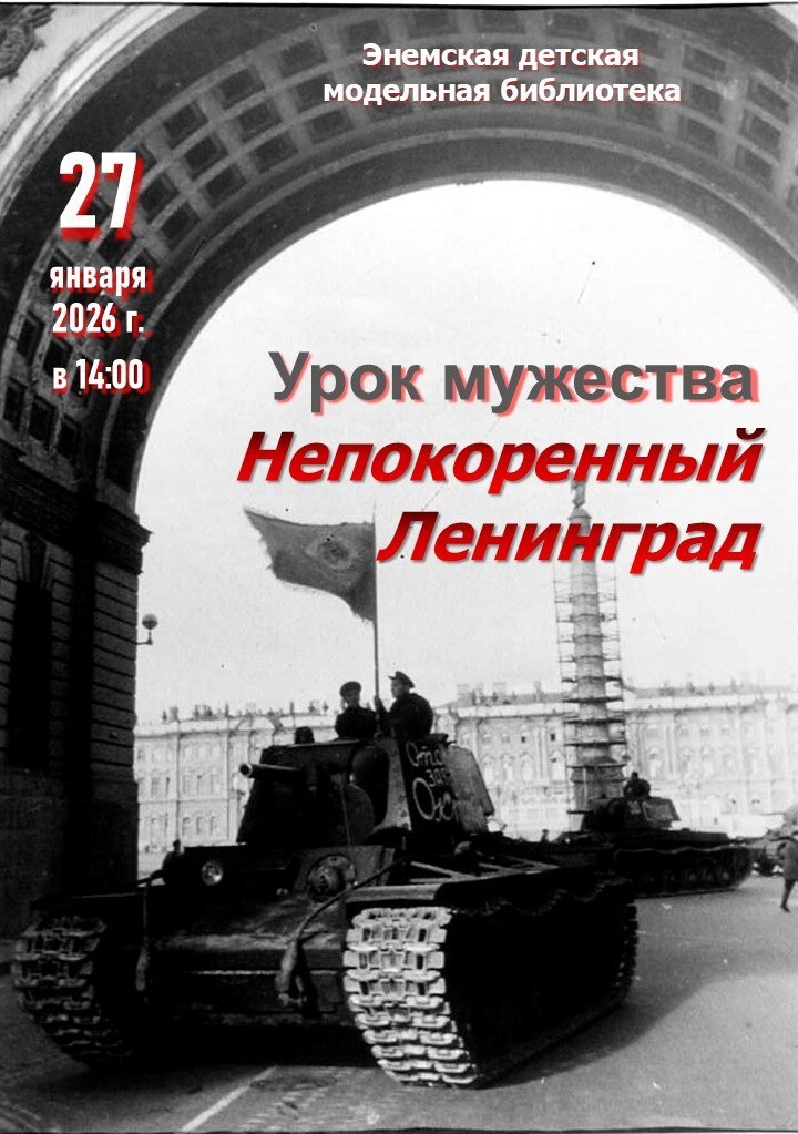 Урок памяти «Непокоренный Ленинград» Дата: 27 января 2026 г. Время: 14.00 – 15.00 Место: ЭДМБ Приглашаем на урок памяти, посвященный героизму и стойкости жителей осажденного города. В ходе часа мы обсудим беспримерный подвиг людей, которые проявили мужество в условиях полной изоляции. В программе – хроника жизни в блокадном Ленинграде через документальные свидетельства и литературные произведения. Участники смогут погрузиться в атмосферу того времени, услышав отрывки из дневников и стихотворений, созданных в блокадные дни, а также воспоминания очевидцев. Мультимедийная презентация с архивными фотографиями, картами и кинохроникой дополнит наше понимание тех тяжёлых лет. Также будут представлены символические предметы — хлебные карточки и норма выдачи 125 граммов хлеба. Это уникальное сочетание визуального ряда и живого слова поможет нам глубже осознать значимость этого исторического события.