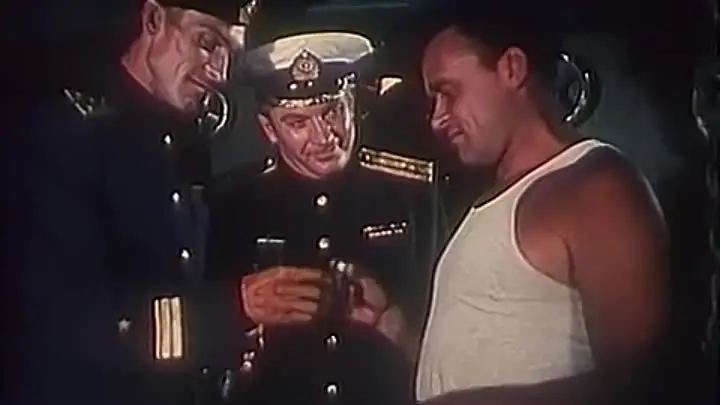 Вот почему зрители остаются равнодушными и судьбы Остапчука и, более того, но верят искренности ого раскаяния, его мелодраматическим слезам. Укрепляет в таком неверии и сама ситуация, навязанная ему авторами. Ведь Остапчук решает спасать майора Карпенко в тот момент, когда вражеская подводная лодка окружена со всех сторон нашими кораблями и ей, равно как и всему экипажу, в том числе Остапчуку, грозит неминуемая гибель. В такой обстановке действия предателя могли быть продиктованы единственным желанием спасти свою шкуру, что и делают, кстати, довольно убедительно другие участники бандитского экипажа. При чем же тут раскаяние? Логичнее было бы передать функции спасения Карпенко диверсанту Янцену, роль которого прекрасно исполняет артист В Волчек.
