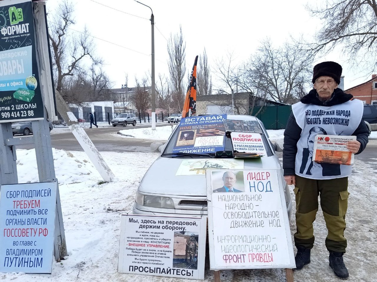 Федерации на сохранение и укрепление суверенитета Отечества в исторических границах 1945–1991 годов. Участники мероприятия выступили за наделение В. В. Путина реальными полномочиями руководителя Государственного совета, Государственного комитета обороны и Ставки Верховного главнокомандующего с целью проведения кадровых реформ и наведения порядка в органах власти и средствах массовой информации, а также для дальнейшего развития конституционной реформы в интересах национально-освободительного движения. Акция прошла в поддержку Российской Армии и Военно-Морского флота, которые ведут боевые действия в ходе специальной военной операции. В ходе автопикета транслировались эфиры соратников НОД, распространялись газеты «НК Суверенитет» и информационные материалы движения, проводились беседы с гражданами. По итогам мероприятия шесть человек выразили готовность поддержать инициативу, подписав обращение на сайтах Горбсуд.рф и ЗаПобедуВСВО.рф с предложением о наделении В. В. Путина дополнительны