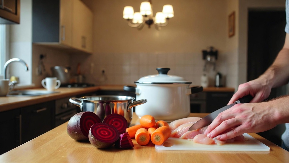 Существует миф, что настоящий борщ — это магия на полдня. Сначала варим бульон два часа, потом долго тушим свеклу... Друзья, давайте честно: в будний день на такую романтику сил просто нет. Но это не повод давиться пельменями! Сегодня мы взломаем систему. Я покажу, как сварить тот самый борщ — огненно-красный, густой и ароматный — ровно за полчаса. Секрет в правильной логистике процессов: мы будем делать всё параллельно, не теряя ни секунды. Засекайте время! ⚡ БЫСТРЫЙ СТАРТ:⏱ Время: 30 минут (честно!)