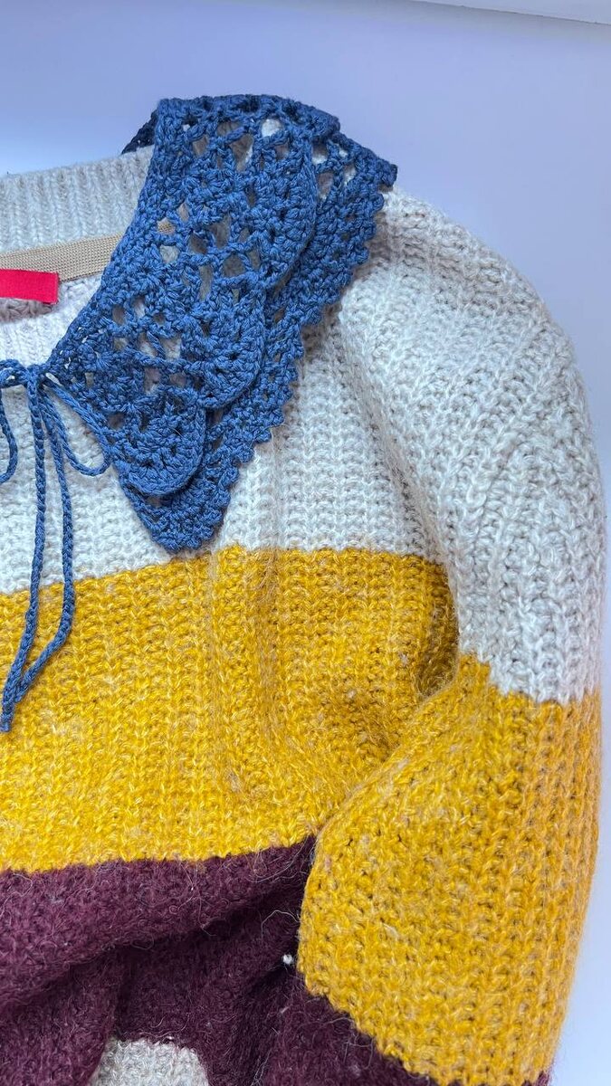 Ажурный воротничок из Aura Yarns Li Vi - очень пластичный, тяжеленький и при соприкосновении с кожей нежнейший 💙