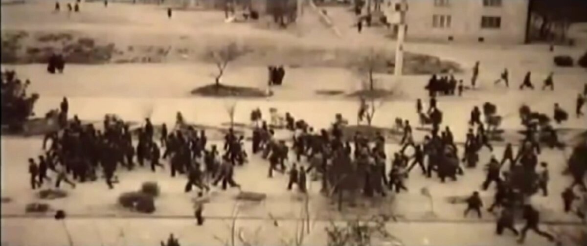Бедян Карлен Акопович, 1935 г. рождения: «Они зашли во двор, эта черная масса. Вот, значит, наш пятый дом стоит, и напротив стоит шестой дом, между нами где-то 30-35 метров, и вот в этом промежутке свободного места не было, все было черно.… И вот, когда первый камень залетел, я думаю: уже все, к нам тоже ворвались. И смотрю – камень за камнем, камень за камнем. И поломали все окна… С трех сторон они стали врываться к нам… Открыли пианино, и, как я понял, кое у кого из них было музыкальное образование, потому что играли они на пианино хорошо, свои мелодии, песни. Один играет, другой говорит – отойди, я тоже буду играть; играет этот – следующий говорит – отойди, я тоже… Пошли в мою сторону, увидели меня… Молодые, здоровые парни от 18 до 25 лет. И не оборванцы были, не в рабочей одежде; они были хорошо одеты; у кого куртка, у кого плащ кожаный… Ломики где-то сантиметров 40 или 50 вытащили, у каждого в руке блестят… Я же говорю, у них были специально приготовленные ломики, на токарном станке, мне кажется, выточены были. Это не одного дня работа».
