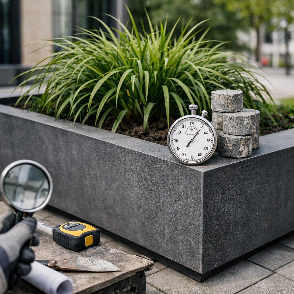При выборе уличных вазонов один из ключевых вопросов — на сколько лет они рассчитаны и как будут выглядеть со временем. Стеклофибробетон изначально разрабатывался как материал для архитектуры и городской среды, где изделия эксплуатируются десятилетиями.