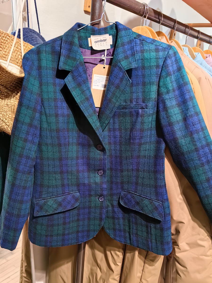 Жакет в клеточку, который я вам показываю, такой хороший! Это мой размер и мои цвета, и он точно сел бы на меня идеально. Не стала мерить, потому что цена в 10 000 для меня непривычна, да и на этом конкретном жакете был небольшой дефект на шерсти.