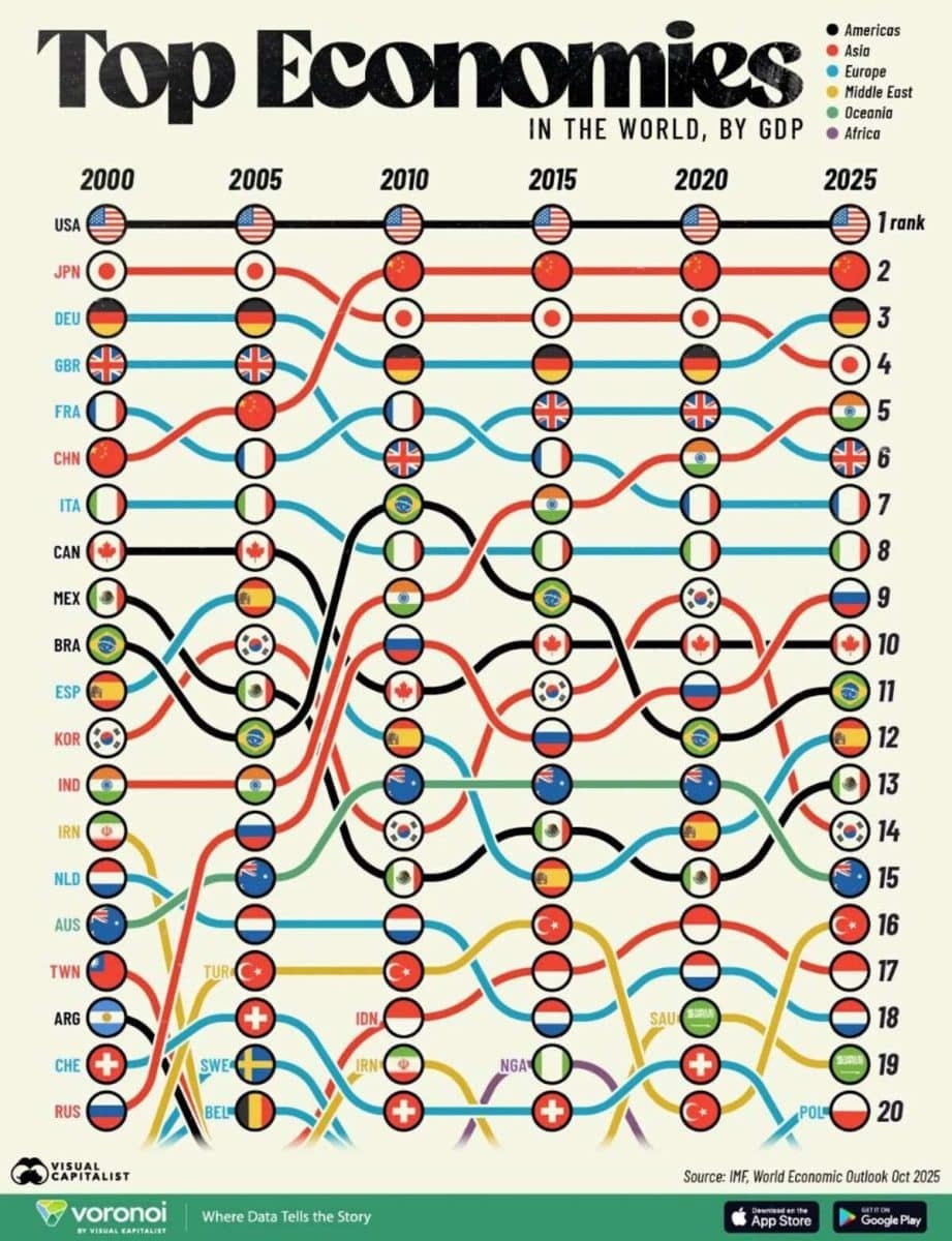Как изменились крупнейшие экономики мира за 25 лет.