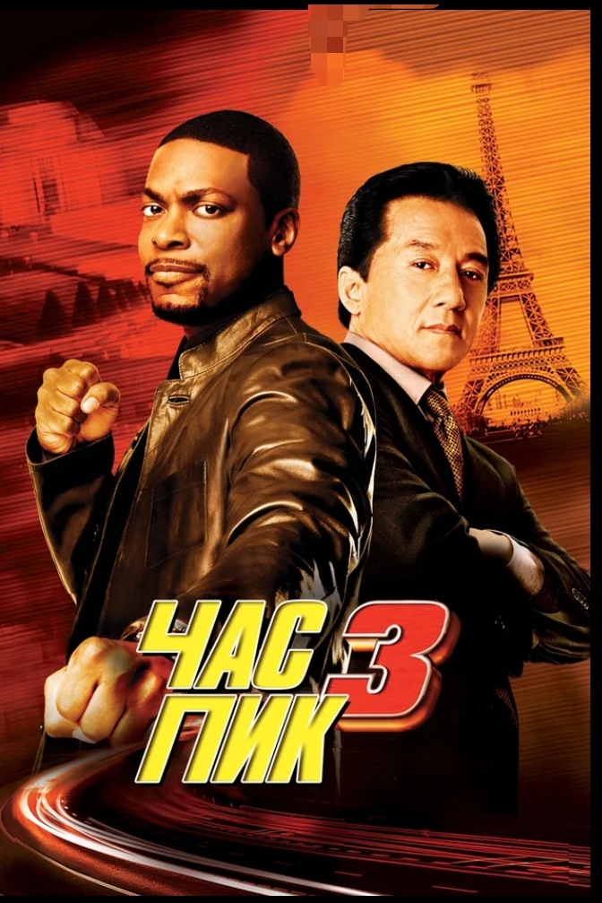 «Час пик 3» — заключительная часть трилогии о непохожих напарниках: сдержанном китайском инспекторе Ли (Джеки Чан) и эксцентричном американском детективе Картере (Крис Такер). Режиссёр Бретт Рэтнер сохраняет фирменный стиль серии — смесь динамичного экшена и безудержного юмора, — но переносит действие в новую локацию: романтический и опасный Париж.