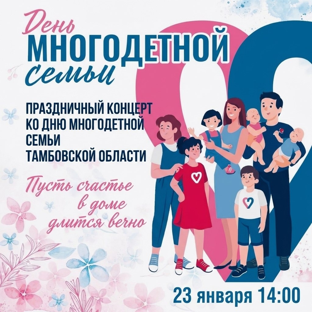 ! ❤️ Дорогие жители и гости села Староюрьево! Приглашаем вас на особенный праздник, посвященный самым богатым на любовь и заботу людям — нашим многодетным семьям. Семья — это не просто слово, это целый мир, наполненный детским смехом, поддержкой и бесконечным теплом. В этот день мы будем чествовать тех, кто дарит жизнь, воспитывает будущее и хранит верность семейным традициям. 📅 Когда: 23 января ⏰ Во сколько: 14:00 📍 Где: Центр досуговой деятельности с. Староюрьево Приходите всей семьей! Давайте вместе создадим праздник, который согреет сердца в этот зимний день. #СтароюрьевскийМО #Тамбовскаяобласть #ДеньМногодетнойСемьи
