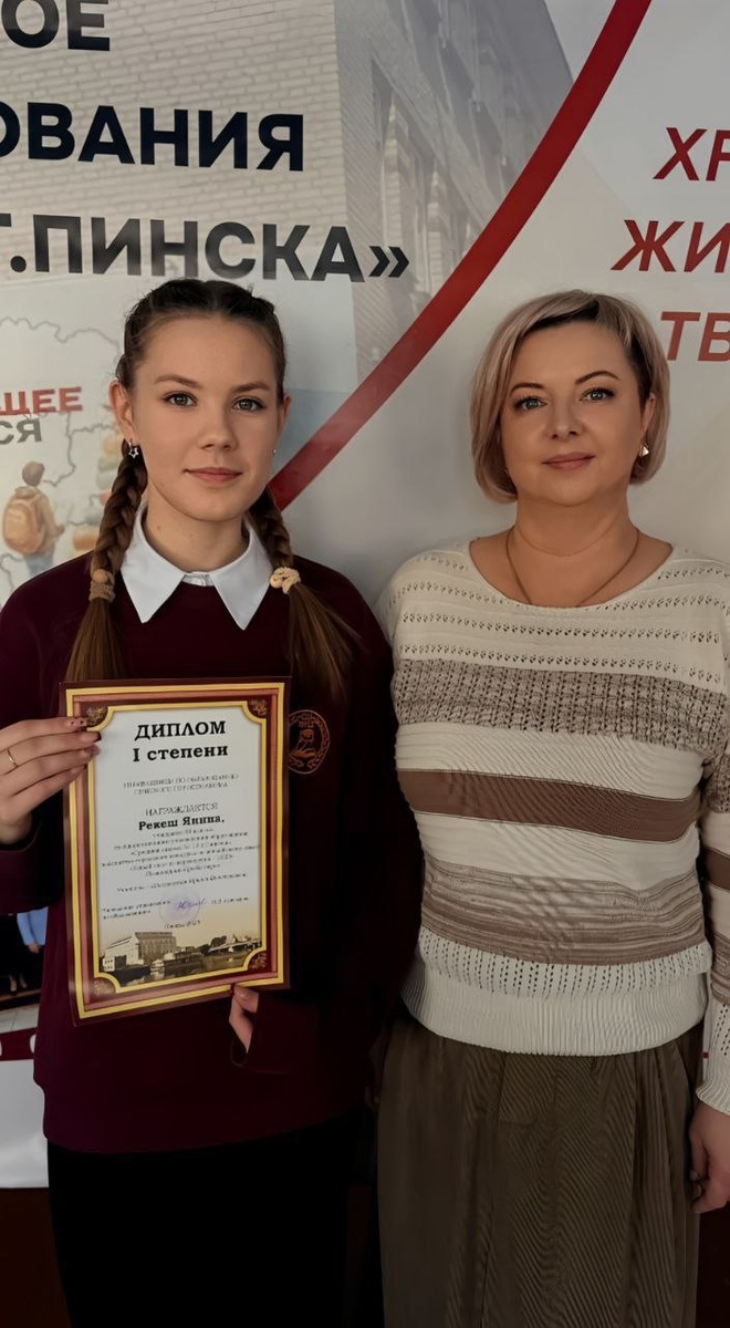 " 🏷Ученица 11 А класса награждена дипломом 1 степени в номинации "Проба пера"! Однако это победа не только Янины Рекеш, но и ее педагога - учителя английского языка Ирины Викторовны Шихутской. ↪️Успех пришел не просто так, за ним стоит систематическая результативная работа учителя с одаренными учащимися. Поздравляем! @Пинский Вестник 📱Ютуб 📱ВК 📱ИНСТАГРАМ 📱ОК 📱ФЕЙСБУК 📱ТИК ТОК Прислать новость