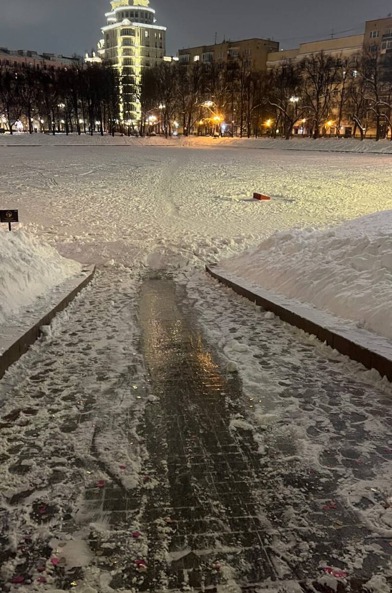 Из новогодних развлечений на пруду только вот такая горка. Кстати, может и хорошо, район отдыхает от гостей и туристов