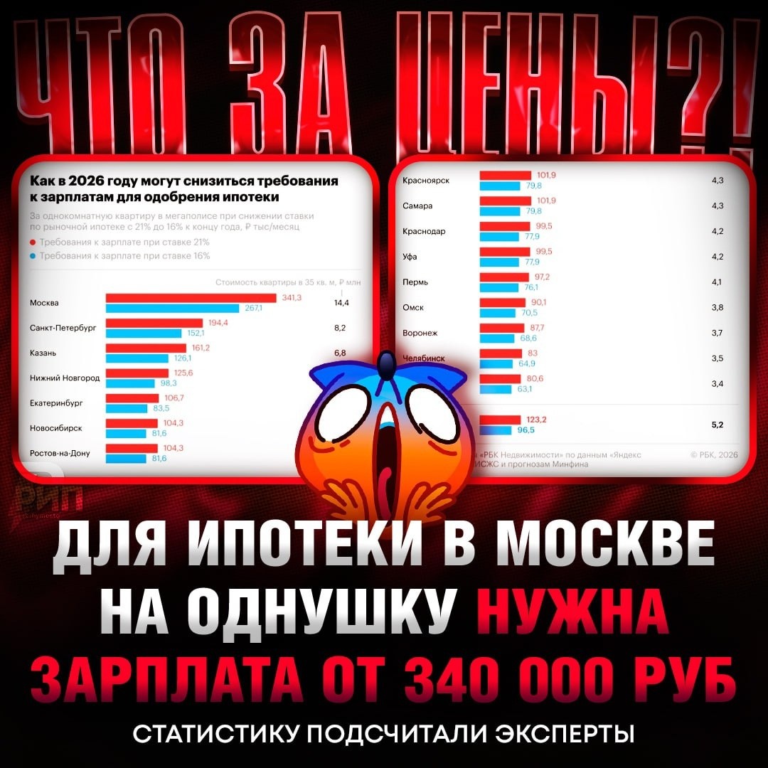 ⚡️ 340 000 рублей нужно зарабатывать москвичам, чтобы получить ИПОТЕКУ — подсчитали «РБК Недвижимость