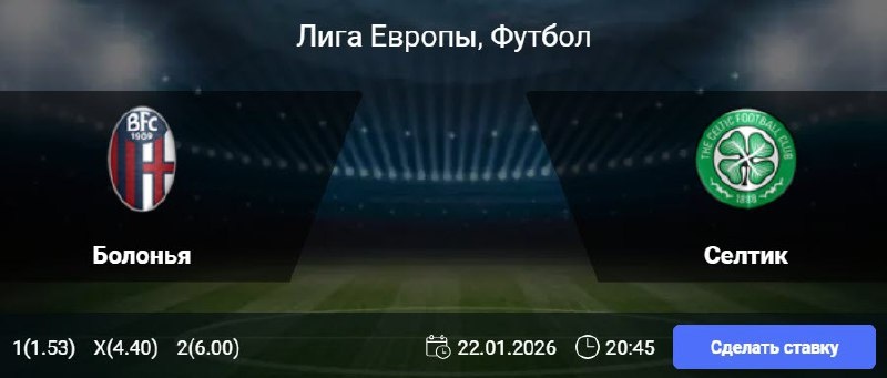 Статистика Болоньи: В последних девяти еврокубковых матчах команда потерпела лишь одно поражение, одержав четыре победы и четырежды сыграв вничью. В пяти из семи предыдущих домашних игр на европейской арене клуб забивал не более одного мяча. В семи из восьми последних матчей в рамках европейских клубных турниров «Болонья» не смогла сохранить свои ворота в неприкосновенности. Статистика Селтика: В последних 11 выездных матчах Лиги Европы команда одержала лишь одну победу, дважды сыграв вничью и потерпев шесть поражений. В 14 предыдущих гостевых поединках этого еврокубка «Селтик» неизменно забивал. В семи из девяти последних матчей шотландцев в Лиге Европы голами отмечались обе команды. 🎯 Обе забьют (Да) 🎲 кф (1.84) 👉 СДЕЛАТЬ СТАВКУ 🎁 ФРИБЕТ WINLINE - 3000₽ (промокод: BETWIN) 👉 СМОТРЕТЬ ПРОГНОЗ 👇 Подпишись на нас 🧿 ВКонтакте ✈️ Телеграм 📎 Сайт