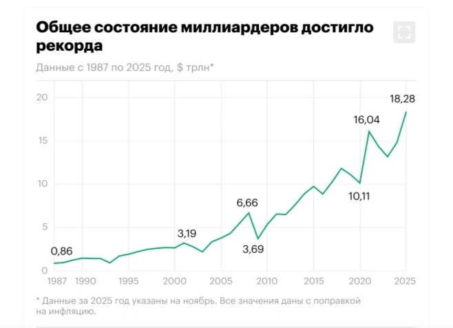 Перед Давосским форумом международной организации по борьбе с неравенством Oxfam подогнала свежую статистику по сверхбогатым в мире. Человеческая цивилизация, возможно, достигла максимального за всю историю уровня концентрации богатств в руках немногих. Не будем утомлять цифрами. Всего два факта. С 2020 года общее состояние мировых миллиардеров удвоилось, а с 2000-го - увечилось в семь раз. Двенадцать богатейших людей мира обладают богатством, превышающим общее состояние беднейшей половины населения планеты. В 1991 году рухнула последняя идеология модерна - либерализм, победив за XX век две другие идеологии модерна - фашизм и коммунизм. В постмодерне капитализм всё дальше отдаляется от свободного предпринимательства к пирамидальным, иерархическим структурам. Инклюзивные институты, призванные ограничивать узурпацию со стороны меньшинства (суды, выборы) становятся лишь декорацией. Капиталу уже никто не даёт бой всерьёз, он тотально побеждает.