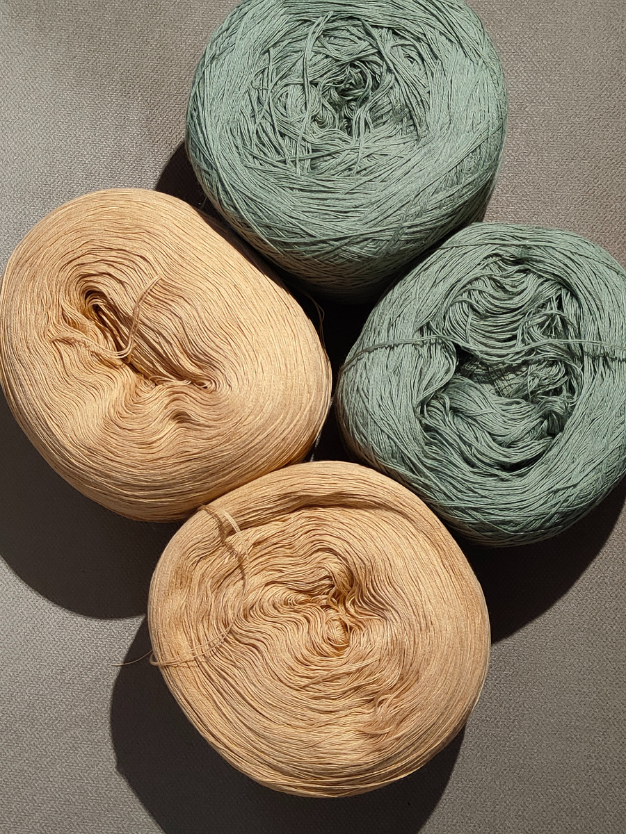Всем доброго дня. Это вступление в СП "Цветочный калейдоскоп" второй сезон. Организатор - Ирина Рогова. Каналы Ирины на Дзен и на Рутуб "Вяжу и худею". В первом сезоне вязать было интересно, правила демократичные, атмосфера очень теплая... В общем, попросили мы Ирину второй сезон. Подробно о правилах, сроках проведения можно узнать из видео-приглашения от Ирины на Дзен или на Рутуб https://rutube.ru/video/7587b48bb0f76c3126bd5386fd4ea1df/ Хочется, конечно, связать все и сразу. Но для начала я расскажу о пряже на два процесса. Первым планирую связать джемпер из 100% хлопка. И т.к. у меня это будут полоски двух цветов, то эта работа вполне вписывается в правила СП. Мягкий хлопок. 1500 м /100 г. В моточках смотка в три нити, но вязать я буду в 6-ть. Фотография немного засвечена, цвета пряжи более плотные, насыщенные. Вторым процессом беру кардиган. Что-то у меня их совсем мало и это надо исправлять. Кардиган будет наипростейшим, базовым, регланом сверху. Есть сомнения хватит-не хватит, т.