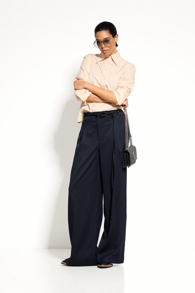 Брюки Lakbi 55349 — широкие брюки с поясом и необработанным верхним краем для модного городского образа.