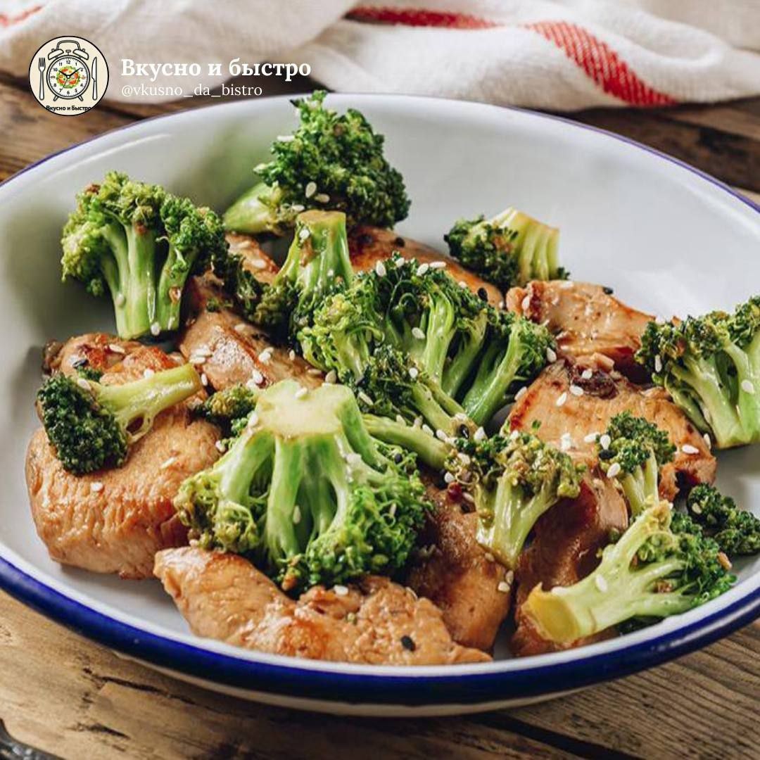 #ужин #40мин 🕒 Время приготовления: ~40 минут Порции: 2–3 Сложность: легко 🧾 Ингредиенты: 🟠Филе индейки — 350 г 🟠Брокколи — 500 г 🟠Морковь — 1 шт. 🟠Лук — 1 шт. 🟠Оливковое масло — 2 ст. л. 🟠Вода — 250 мл 🟠Соль, перец — по вкусу 🟠Кунжут — по вкусу 🍴Приготовление: 1. Индейку нарежьте небольшими кусочками. 2. Брокколи разберите на соцветия. Морковь натрите на тёрке, лук мелко нарежьте. 3. В глубокой сковороде разогрейте оливковое масло. Обжарьте индейку до изменения цвета. 4. Добавьте лук и морковь, готовьте ещё 5 минут, помешивая. 5. Выложите брокколи, посолите и поперчите. 6. Влейте горячую воду, накройте крышкой и тушите на слабом огне около 30 минут. 7. Перед подачей посыпьте кунжутом. Вкусно и Быстро | Мы в Мах 📲