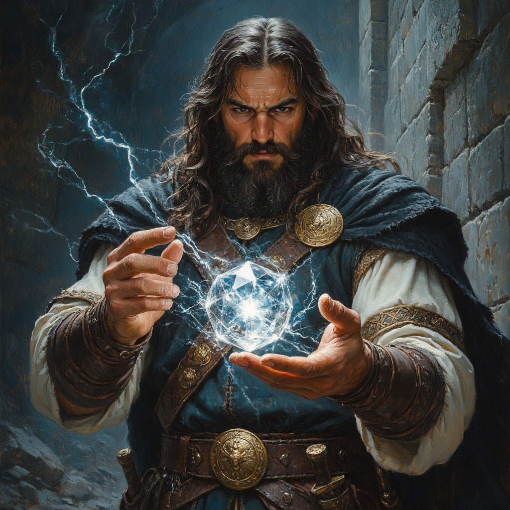 Воздух трещал от напряжения. Не от звука — от чистой, сконцентрированной силы, которую Илья Муромец вытягивал из глубин своего существа. Его «Камень земли» не пел. Он "выстраивался". Подобно тому, как в кристалле атомы занимают строго определённые позиции, Илья упорядочивал свою волю, свою магическую сущность, превращая её из оружия в инструмент.