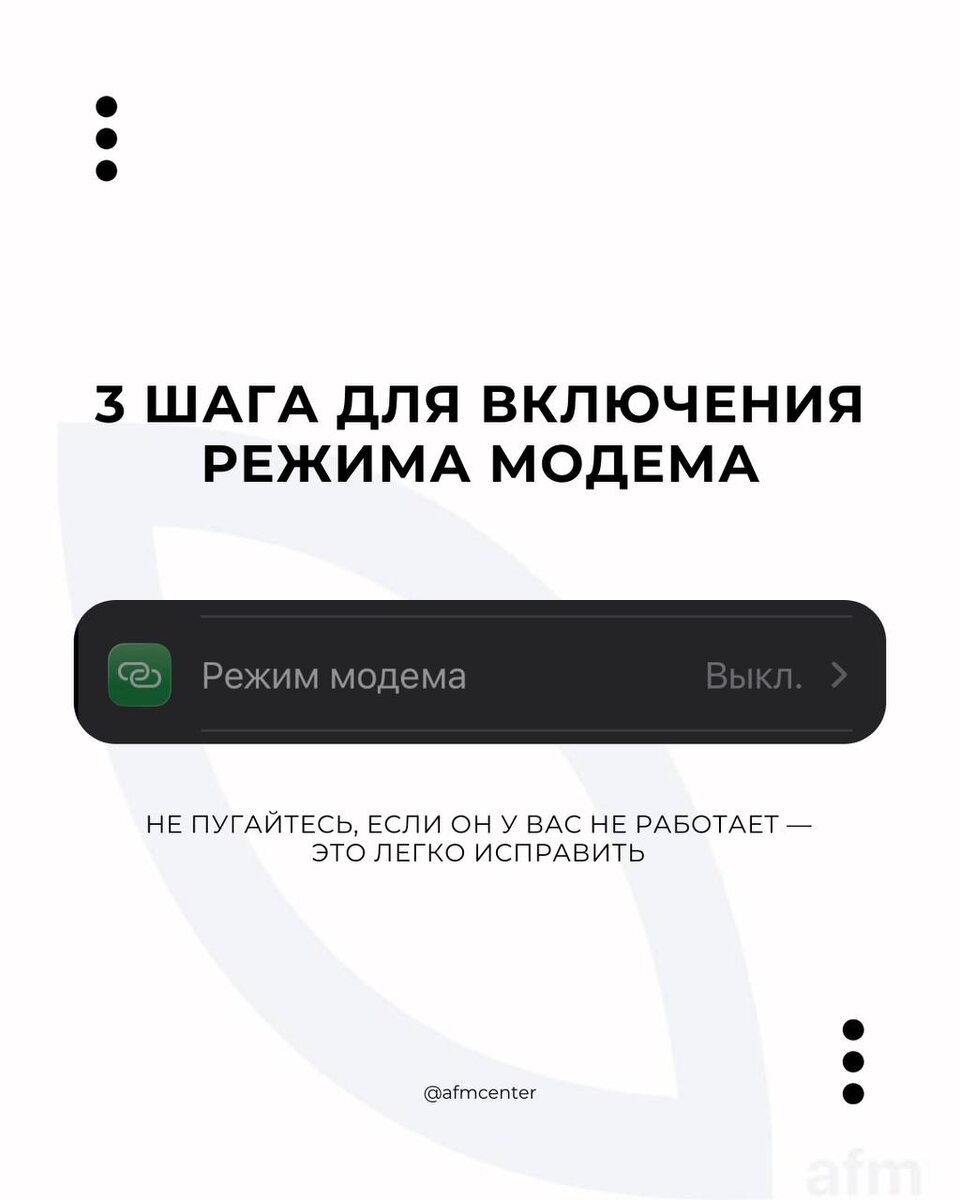 3 шага для включения режима модема